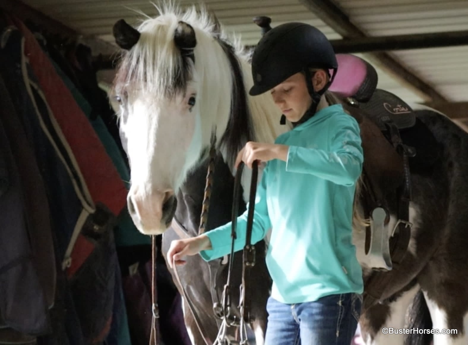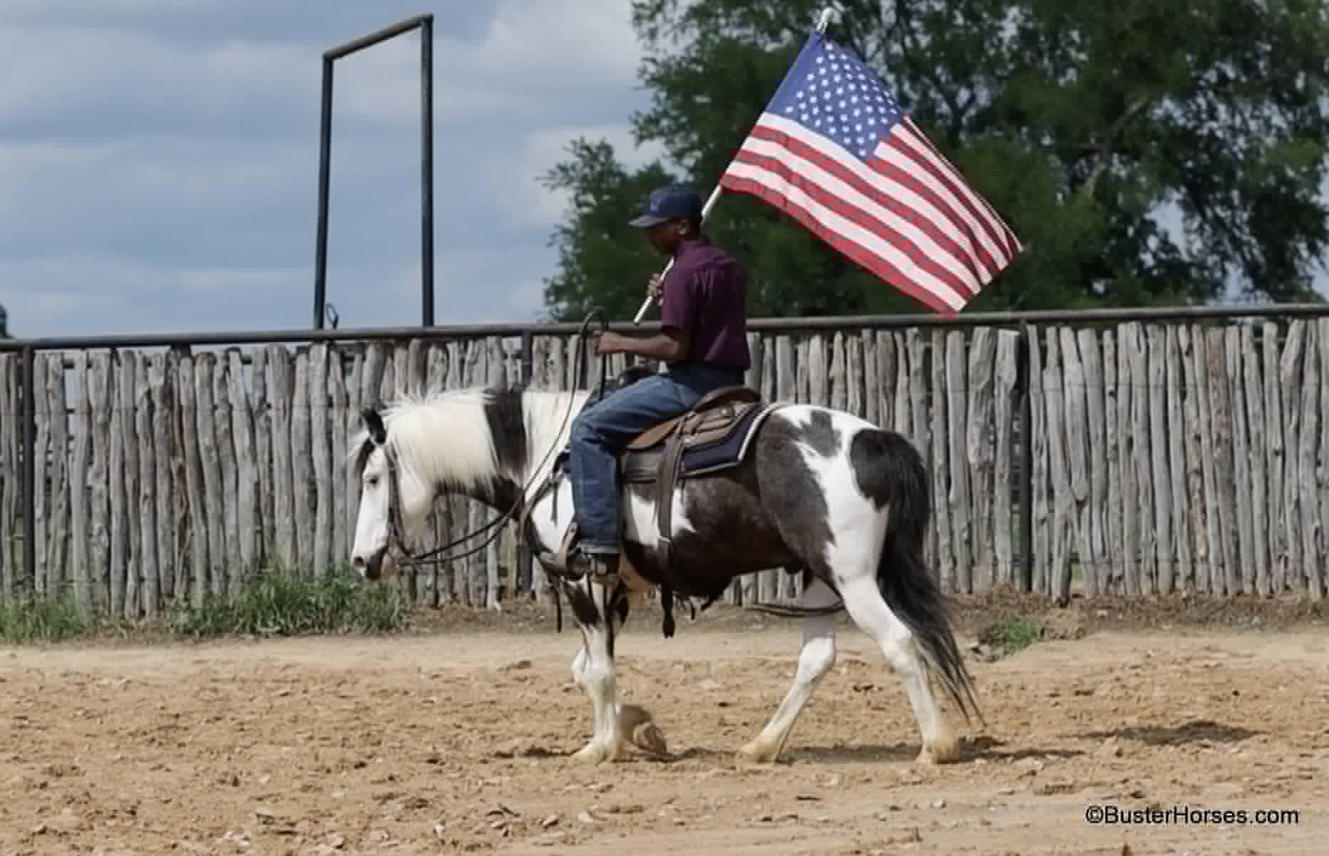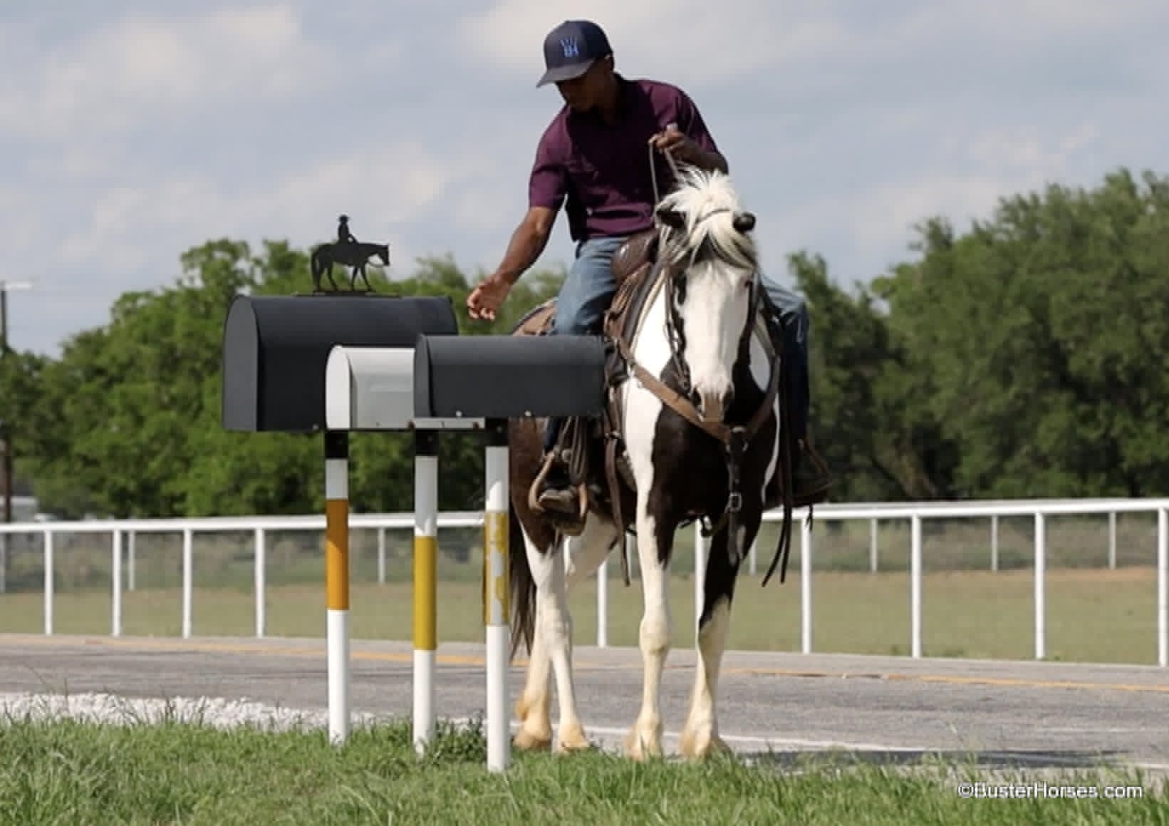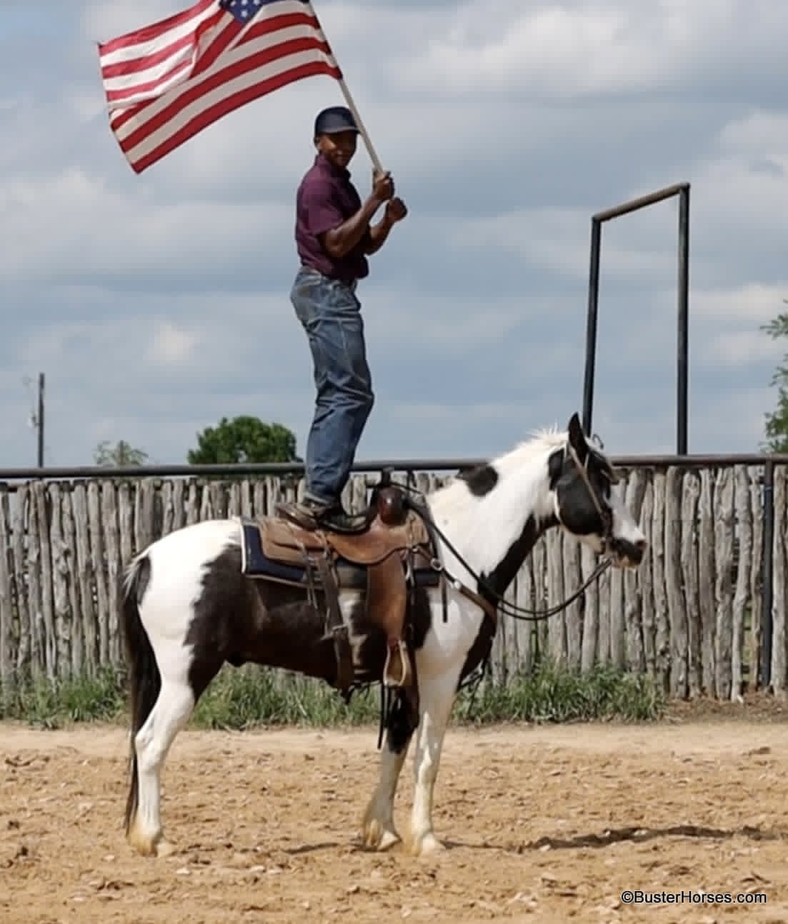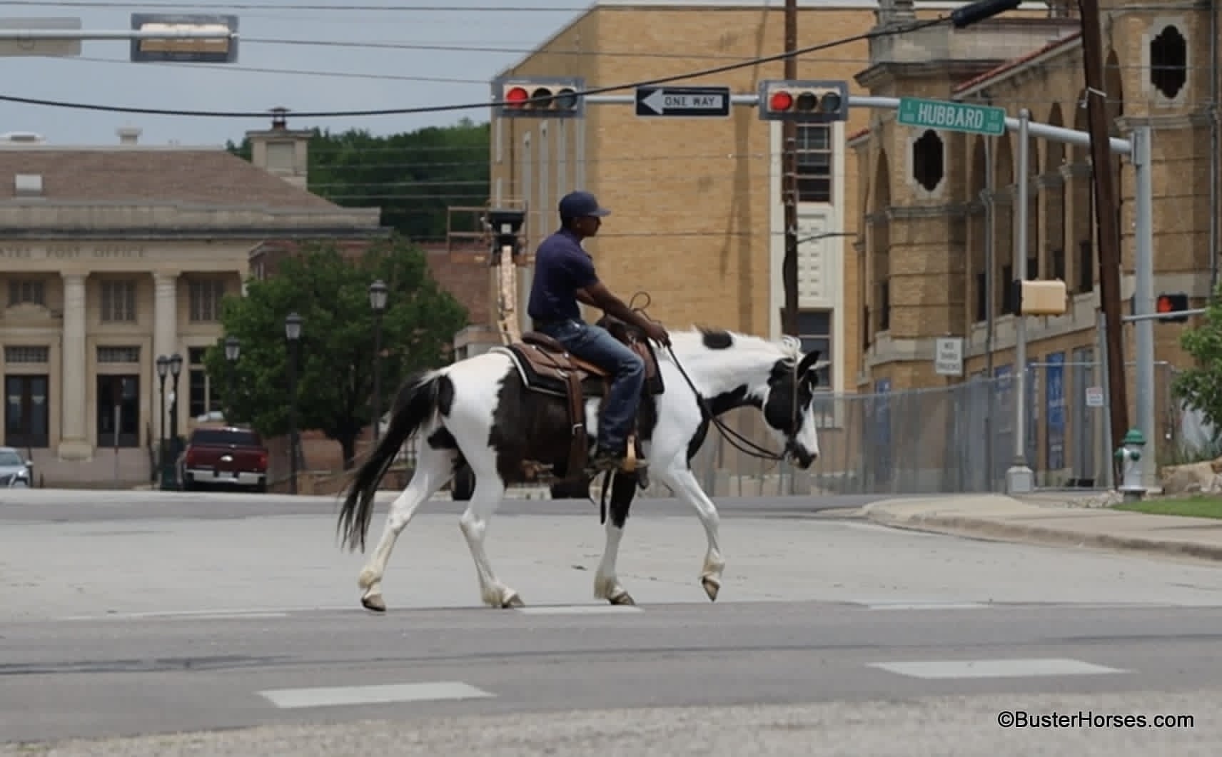 If you are looking for a flashy, fun, no-nonsense, sweet, just point-and-go have a good time trail riding companion… then Tonto is your man!!! He is at the perfect age at only 7 years old, he has already been around and seen lots of things, been hauled, been on lots of rides, been in lots of parades … but he is only 7 and still has his whole lifetime in front of him! This sweet little gelding is great-natured, kind, and so extremely simple and uncomplicated to ride. He is as smooth as they come and suitable for just about any level of rider. If you are sitting on him, you feel extremely secure. He is so naturally smooth moving in all of his gaits, that you would have to practically just pick up and bail off of the side of him to be able to come off of this one!!! He is naturally low-headed and will travel on a relaxed rein and neck rein around – but, you can also pick him up and ride with a lot of contact, and he will tolerate just about anything with new rider’s bumbling around being all over on him, in his face, and in his mouth. He has an adorable personality and loves to be around people. He drops his head for the halter or the bridle to be put on, and will stand there relaxed and patient if you have to fumble around and get organized. He could care less about other horses and never knickers or calls back to the barn, super good about leaving the barn and going out alone. He hauls like a perfect gentleman. If you often ride out alone, then this is the one for you. He is great anywhere in the group and has a huge big ground covering almost running walk to him if you push him and ask for it. He is a unique cross that could ride with the regular horses and also keep up with the gaited horses! He loves the water and does not hesitate to cross the creek or go into the pond, he is sure-footed and handles up and down terrain, creek beds, banks, Rocky areas, and thick wooded trees. He pays attention and navigates where he is going. He is great to catch, bridle, saddle, groom, bathe quiet for the vet and the farrier, and just an all-around gentleman! Everybody here adores this sweet horse, he will be with his next partner for a long time! Please do not hesitate to give us a call if you have any questions about him! Ashely at Buster Horses 214-605-7174 Tonto is shod all the way around and is ready to hit any trails that you put in front of him, his feet were just reset last week. Prior to being shod, he was barefoot for quite a while, he has really great feet, and could easily go barefoot again if you were just riding around your place locally. His teeth were just done by our equine dentist last month, and he also had his sheath cleaned, his ears preemptively treated for ticks, and was dewormed at that time. He will arrive to his new owner up to date on everything and ready to go. He is in great shape and in good health. Watch his video, and to see additional videos, go to our website: BusterHorses.com or our Facebook page: Buster Horses Tonto is located in Weatherford, TX – one hour from Dallas / Fort Worth International Airport. He is an easy day trip, or fun overnight trip to come and try out, from anywhere! We are experienced, knowledgeable sellers, and we can help with quickly arranging affordable shipping to any buyer’s location – we have experience shipping worldwide – including regularly to Hawaii, Canada, Mexico, Europe, and South Africa. Check our website for buyer reviews, more videos of Tonto, additional info, etc: BusterHorses.com/Tonto-Paint-Gelding