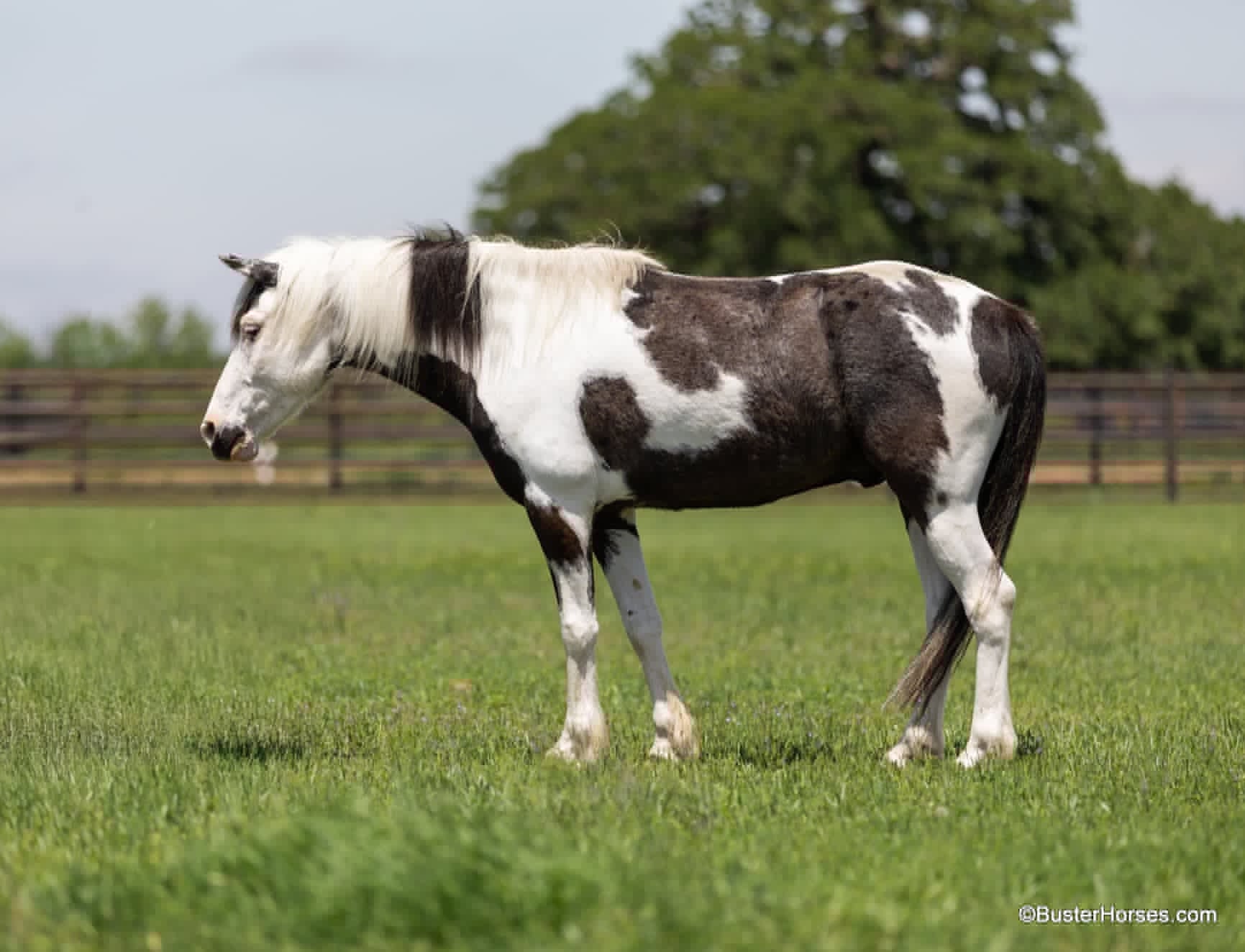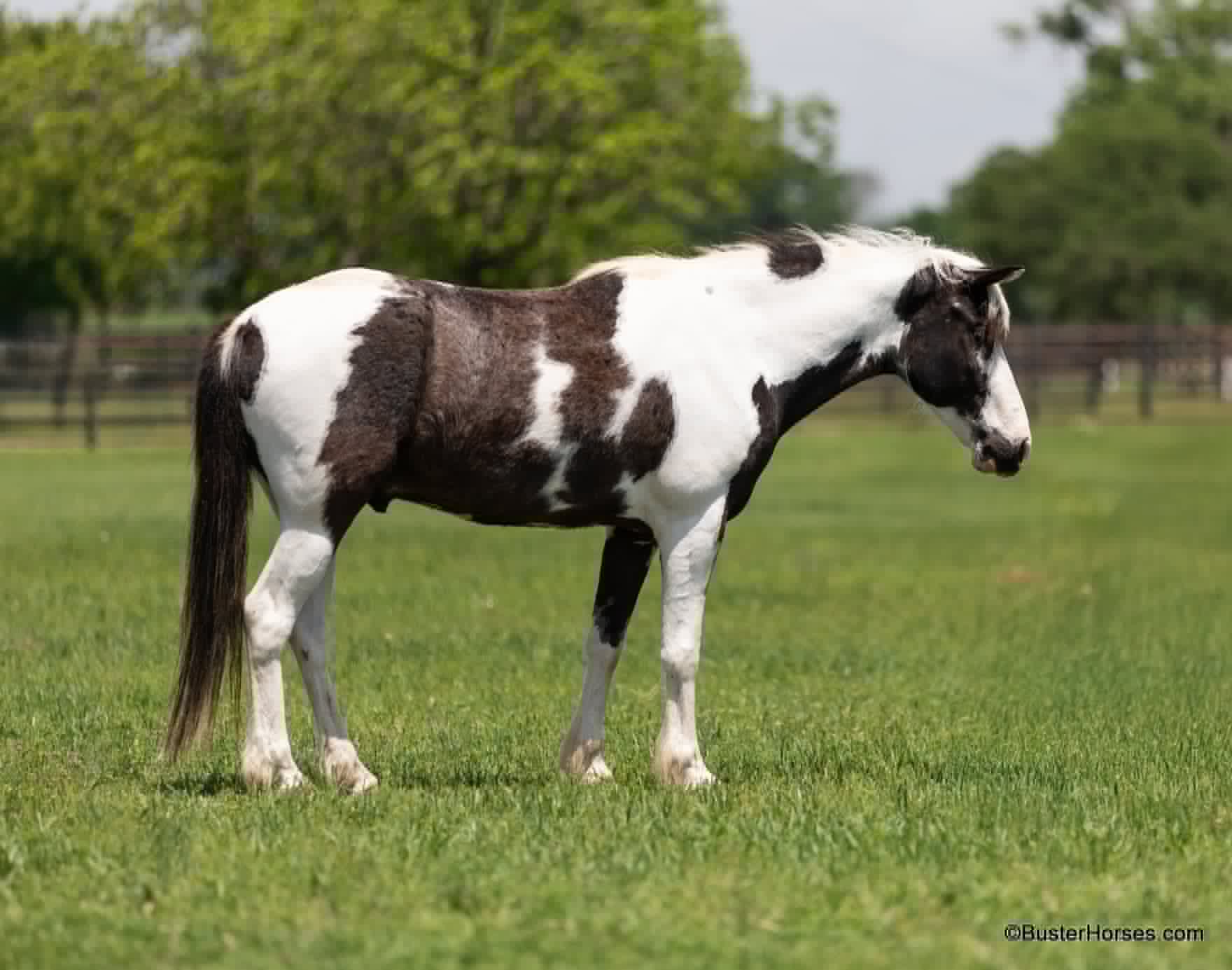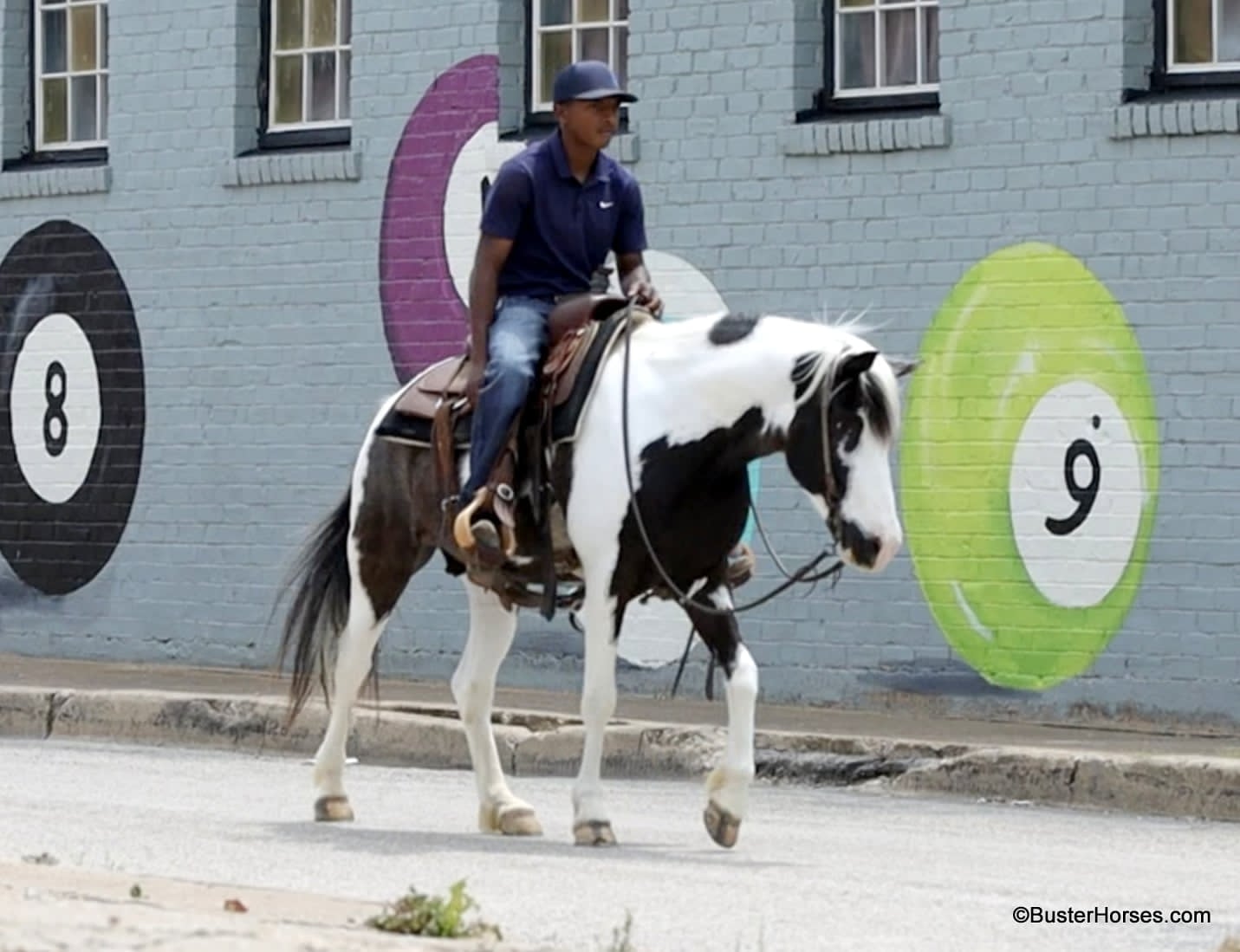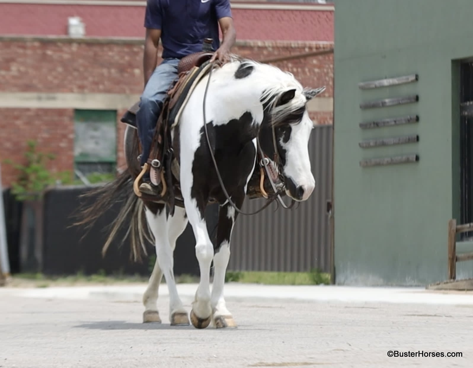 If you are looking for a flashy, fun, no-nonsense, sweet, just point-and-go have a good time trail riding companion… then Tonto is your man!!! He is at the perfect age at only 7 years old, he has already been around and seen lots of things, been hauled, been on lots of rides, been in lots of parades … but he is only 7 and still has his whole lifetime in front of him! This sweet little gelding is great-natured, kind, and so extremely simple and uncomplicated to ride. He is as smooth as they come and suitable for just about any level of rider. If you are sitting on him, you feel extremely secure. He is so naturally smooth moving in all of his gaits, that you would have to practically just pick up and bail off of the side of him to be able to come off of this one!!! He is naturally low-headed and will travel on a relaxed rein and neck rein around – but, you can also pick him up and ride with a lot of contact, and he will tolerate just about anything with new rider’s bumbling around being all over on him, in his face, and in his mouth. He has an adorable personality and loves to be around people. He drops his head for the halter or the bridle to be put on, and will stand there relaxed and patient if you have to fumble around and get organized. He could care less about other horses and never knickers or calls back to the barn, super good about leaving the barn and going out alone. He hauls like a perfect gentleman. If you often ride out alone, then this is the one for you. He is great anywhere in the group and has a huge big ground covering almost running walk to him if you push him and ask for it. He is a unique cross that could ride with the regular horses and also keep up with the gaited horses! He loves the water and does not hesitate to cross the creek or go into the pond, he is sure-footed and handles up and down terrain, creek beds, banks, Rocky areas, and thick wooded trees. He pays attention and navigates where he is going. He is great to catch, bridle, saddle, groom, bathe quiet for the vet and the farrier, and just an all-around gentleman! Everybody here adores this sweet horse, he will be with his next partner for a long time! Please do not hesitate to give us a call if you have any questions about him! Ashely at Buster Horses 214-605-7174 Tonto is shod all the way around and is ready to hit any trails that you put in front of him, his feet were just reset last week. Prior to being shod, he was barefoot for quite a while, he has really great feet, and could easily go barefoot again if you were just riding around your place locally. His teeth were just done by our equine dentist last month, and he also had his sheath cleaned, his ears preemptively treated for ticks, and was dewormed at that time. He will arrive to his new owner up to date on everything and ready to go. He is in great shape and in good health. Watch his video, and to see additional videos, go to our website: BusterHorses.com or our Facebook page: Buster Horses Tonto is located in Weatherford, TX – one hour from Dallas / Fort Worth International Airport. He is an easy day trip, or fun overnight trip to come and try out, from anywhere! We are experienced, knowledgeable sellers, and we can help with quickly arranging affordable shipping to any buyer’s location – we have experience shipping worldwide – including regularly to Hawaii, Canada, Mexico, Europe, and South Africa. Check our website for buyer reviews, more videos of Tonto, additional info, etc: BusterHorses.com/Tonto-Paint-Gelding