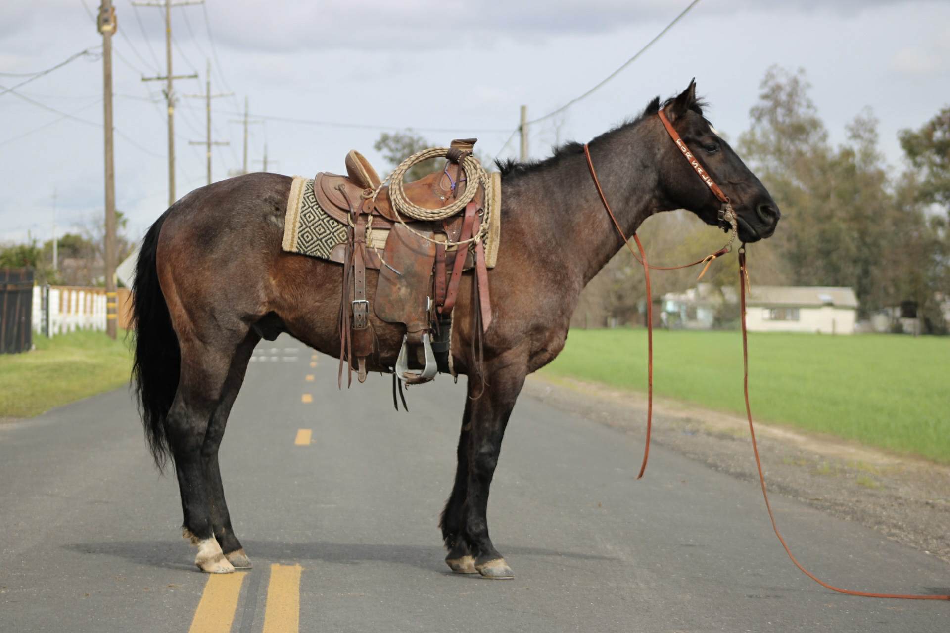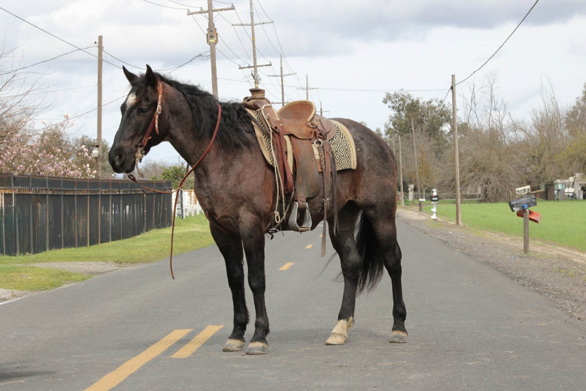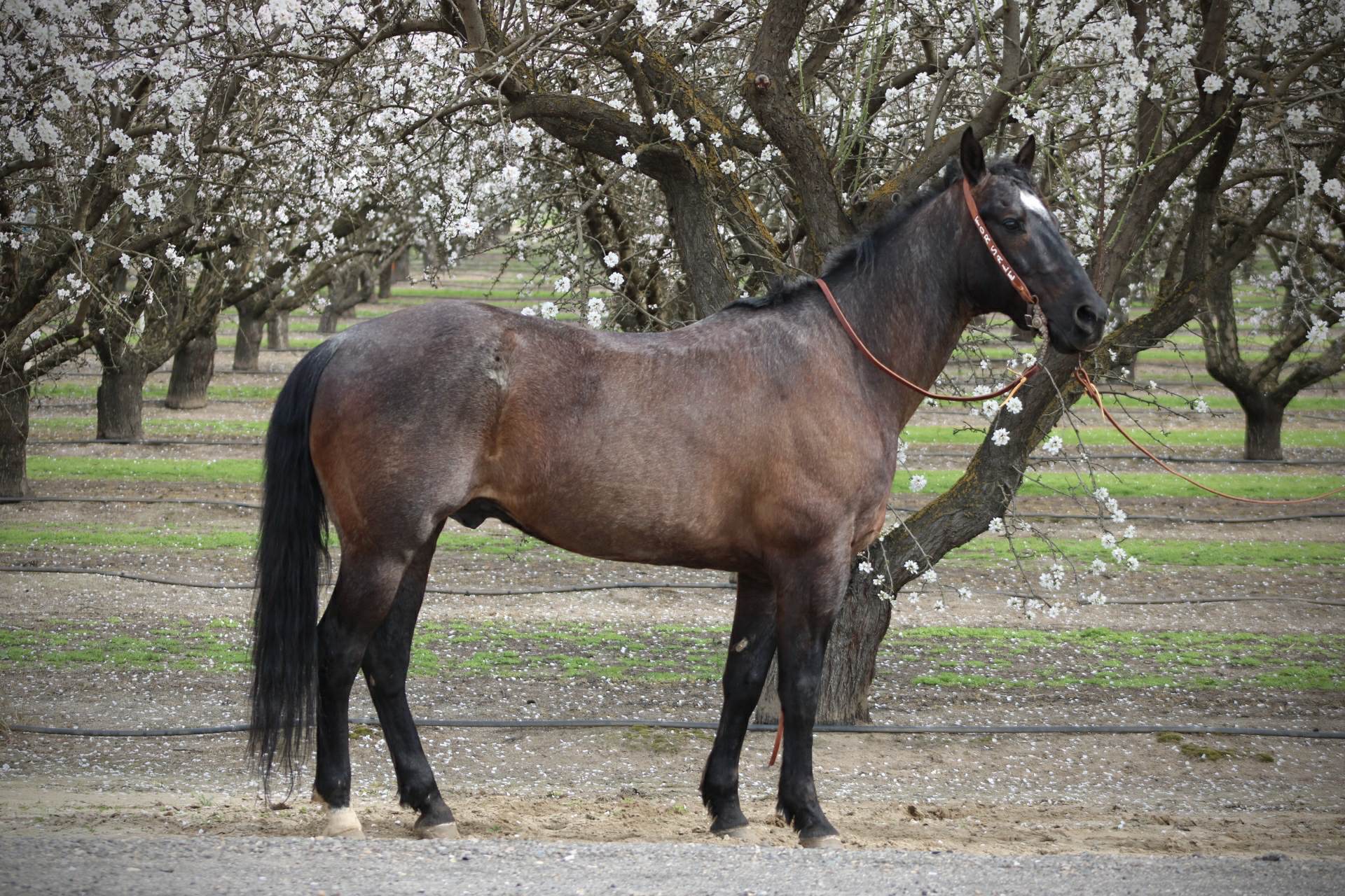 Tuco is a 2013 model grade 15.2 hand blue roan gelding, Sweet, gentle, kindhearted, willing, broke, theres not enough good stuff to say about him ! Tuco has looks for the big screen and build that is gonna bring you all the attention in and out of an arena ! Tuco has the kind of heart someone can only dream of finding in a horse. He is an excellent partner, Tuco will cruise down all types of terrain and trails handling it all with grace and a smooth pace. He’ll walk through water and over big rocks , making sure you are safe and comfortable the whole time. He does not fuss over dogs , cows , cars , bikes, trailers or cats! Tuco handles it all with a confident stride. He doesn’t mind taking on trails alone or in a large group. Whether leading the group or hanging in the back, Tucos just happy to be there! Not only is he a confident trail blazer outside the arena, Tuco is also a complete dream to ride inside the arena, he has a smooth slow walk ,trot, and lope. He has a nice slow spin , side passes, backs up , and the lightest neck rein you could ask for. Tuco excels in an arena. You can carry a flag and give everyone your best queen wave off him ! What sets Tuco apart is his unwavering reliability. He’s the ideal mount for any level of rider, from seasoned ranch hands to novice enthusiasts. Tuco’s calm demeanor and trustworthy disposition mean you can give him as much time off as you’d like, and he’ll always come back ready to work without missing a beat. If you’re searching for a horse who embodies versatility, reliability, Tuco is the one for you. Whether you’re hitting the trails, working hard on the ranch,or having a play day ,Tuco will be your steadfast companion through it all. Call Emily for more information at (562)-458-6261 or to set up an appointment to meet this gem. Located in Atwater , Ca. Delivery can help be arranged anywhere in the U.S.