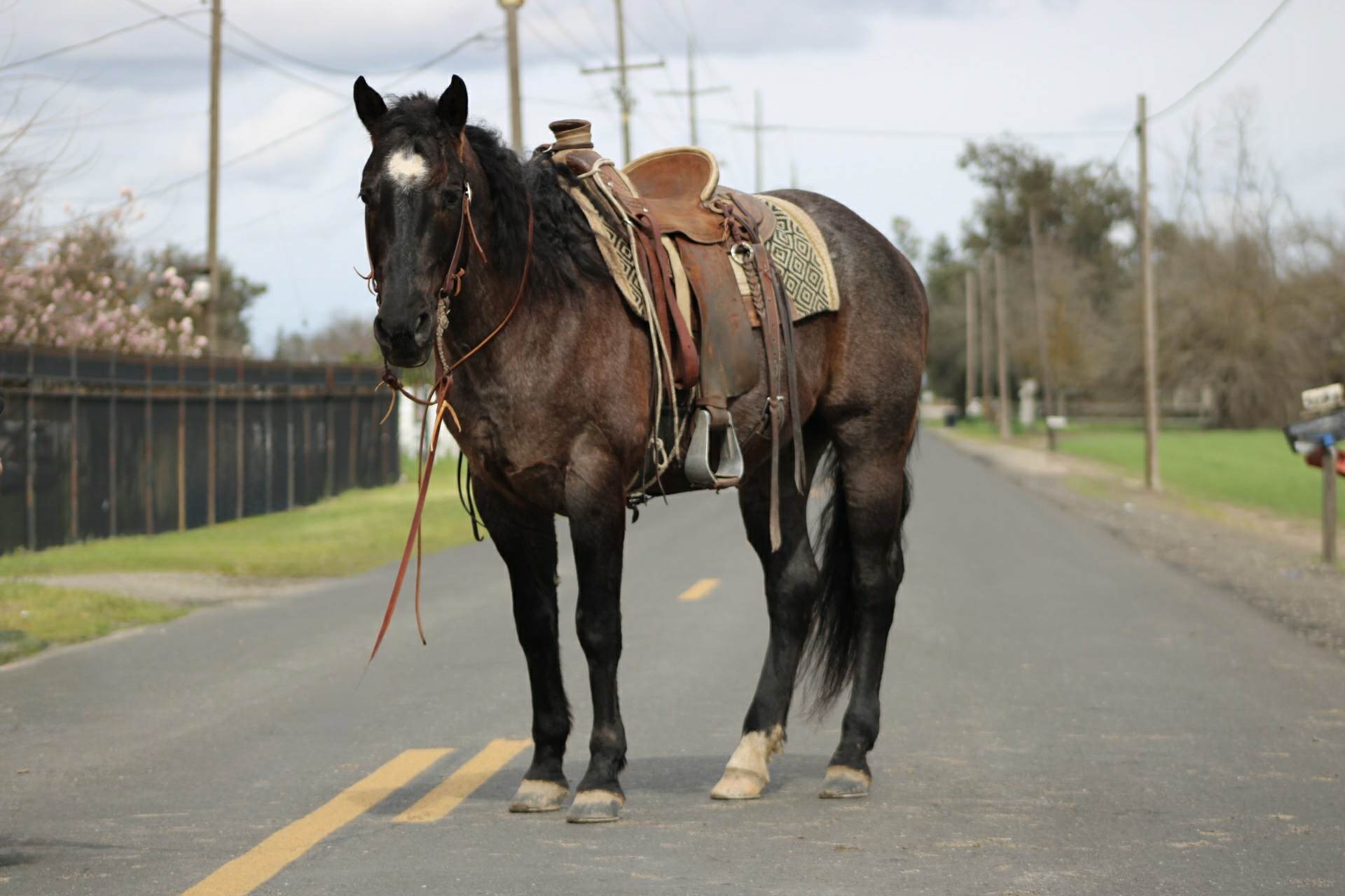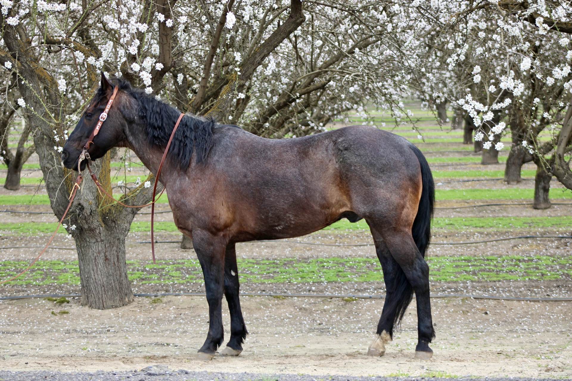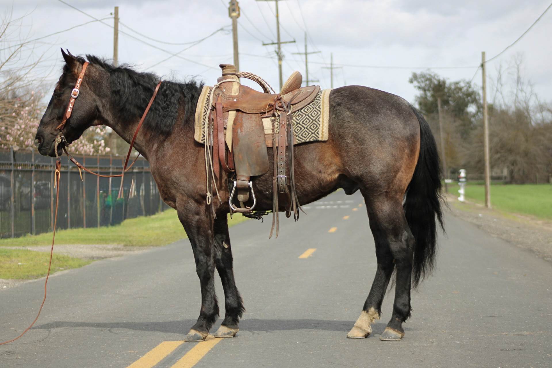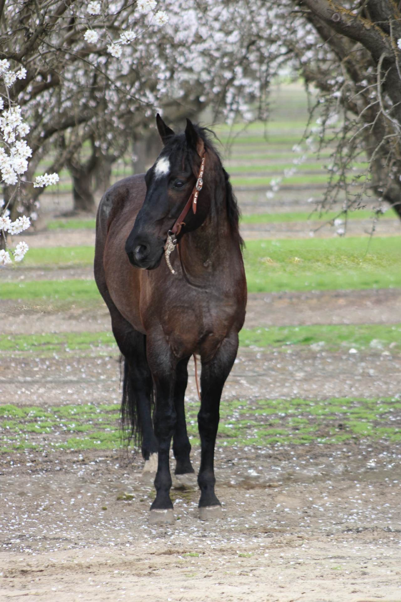 Tuco is a 2013 model grade 15.2 hand blue roan gelding, Sweet, gentle, kindhearted, willing, broke, theres not enough good stuff to say about him ! Tuco has looks for the big screen and build that is gonna bring you all the attention in and out of an arena ! Tuco has the kind of heart someone can only dream of finding in a horse. He is an excellent partner, Tuco will cruise down all types of terrain and trails handling it all with grace and a smooth pace. He’ll walk through water and over big rocks , making sure you are safe and comfortable the whole time. He does not fuss over dogs , cows , cars , bikes, trailers or cats! Tuco handles it all with a confident stride. He doesn’t mind taking on trails alone or in a large group. Whether leading the group or hanging in the back, Tucos just happy to be there! Not only is he a confident trail blazer outside the arena, Tuco is also a complete dream to ride inside the arena, he has a smooth slow walk ,trot, and lope. He has a nice slow spin , side passes, backs up , and the lightest neck rein you could ask for. Tuco excels in an arena. You can carry a flag and give everyone your best queen wave off him ! What sets Tuco apart is his unwavering reliability. He’s the ideal mount for any level of rider, from seasoned ranch hands to novice enthusiasts. Tuco’s calm demeanor and trustworthy disposition mean you can give him as much time off as you’d like, and he’ll always come back ready to work without missing a beat. If you’re searching for a horse who embodies versatility, reliability, Tuco is the one for you. Whether you’re hitting the trails, working hard on the ranch,or having a play day ,Tuco will be your steadfast companion through it all. Call Emily for more information at (562)-458-6261 or to set up an appointment to meet this gem. Located in Atwater , Ca. Delivery can help be arranged anywhere in the U.S.